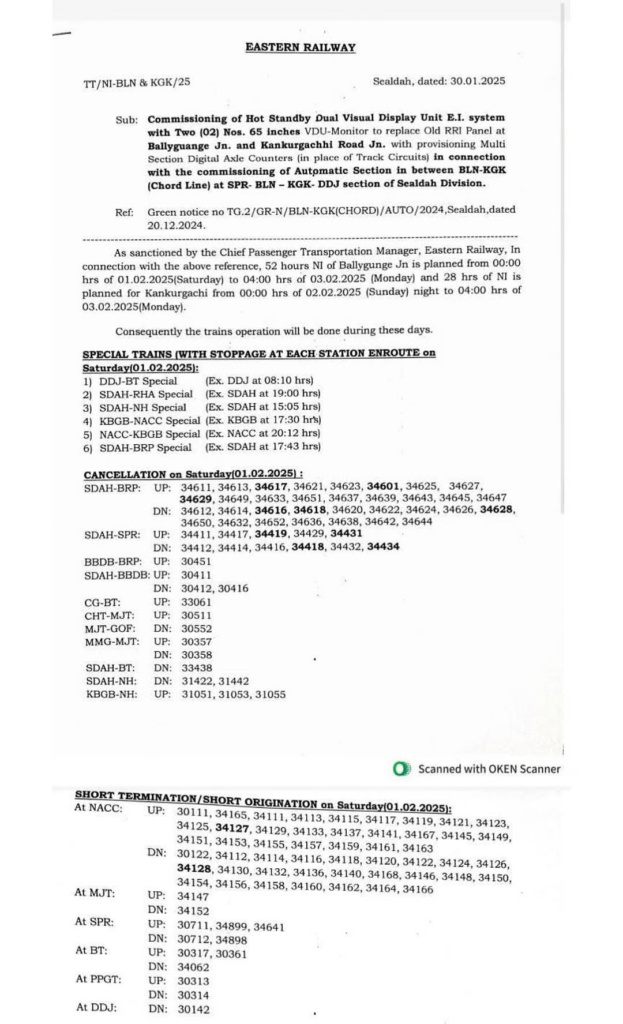 শুক্রবার শিয়ালদহ ডিভিশনের ডিআরএম দীপক কুমার নিগম সাংবাদিক বৈঠক করে ট্রেন বাতিল করার কথা জানান।