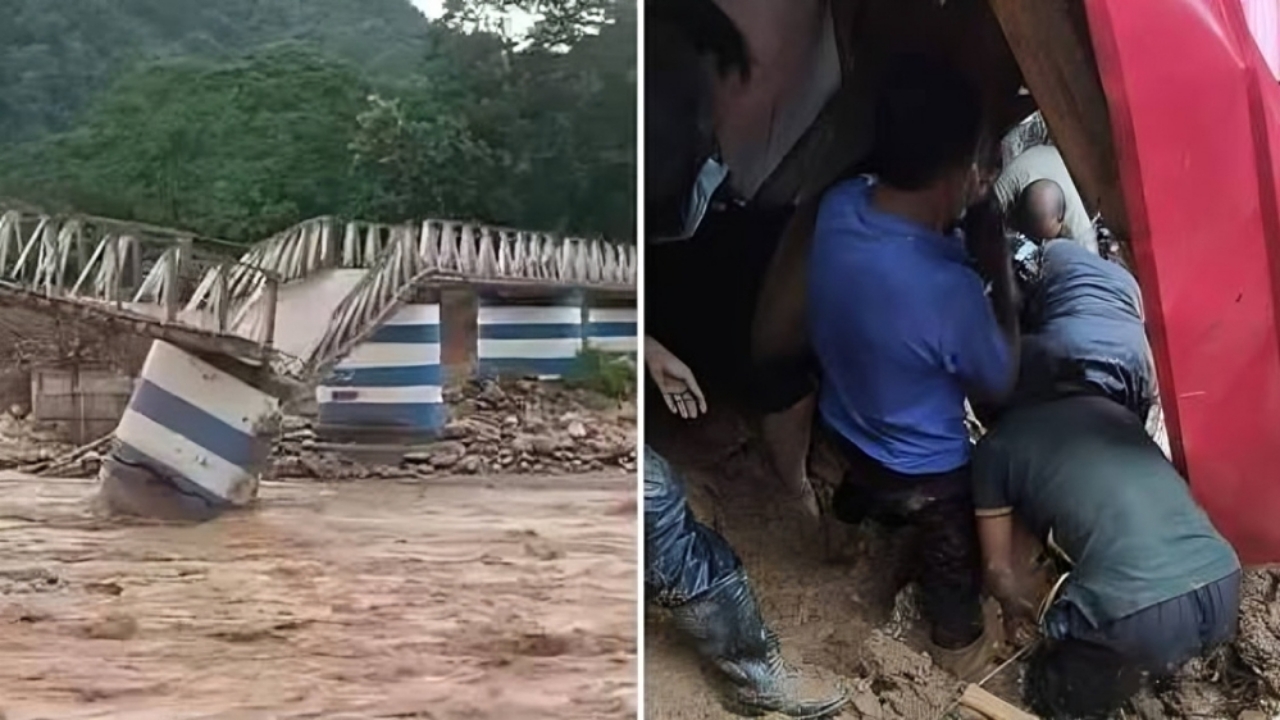 দীর্ঘক্ষণ ধরে টানা বৃষ্টির জেরে দুধিয়ায় বালাসন (Balason) নদীর ওপর থাকা লোহার সেতুটি ভেঙে পড়েছে। সেতুটি শিলিগুড়ি ও মিরিকের মধ্যে গুরুত্বপূর্ণ যোগাযোগের পথ ছিল। সেতু ভেঙে পড়ায় ওই রাস্তায় যান চলাচল সম্পূর্ণভাবে বন্ধ হয়ে গিয়েছে। স্থানীয় প্রশাসন উদ্ধারকাজে নেমেছে, তবে প্রবল বৃষ্টি এবং পাহাড়ি জায়গায় রাস্তা ভেঙে পড়ায় কাজ করতে হচ্ছে মারাত্মক চ্যালেঞ্জের মুখে।