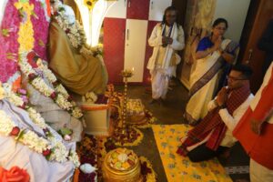 নিউজ ডেস্ক, দৃষ্টিভঙ্গি, ২০:৫০: এক বছর আগের বাধার জবাব দিয়ে নির্বিঘ্নেই ঠাকুরবাড়িতে পুজো দিলেন অভিষেক বন্দ্যোপাধ্যায়(Abhishek Banerjee)। শুক্রবার সকাল থেকেই কেন্দ্রীয় বাহিনী ও রাজ্য পুলিশের উপস্থিতিতে ঠাকুরবাড়ি চত্বরে ছিল চরম উত্তেজনা। তবে তাল ঠুকলেও অভিষেকের উপস্থিতিকালীন নিজের বাড়িতে কেন্দ্রীয় বাহিনীর ঘেরাটোপে কার্যত ‘শান্ত’ই থাকলেন বিজেপি সাংসদ শান্তনু ঠাকুর (Shantanu Thakur)। তবে তাল ঠুকতে অভিষেক বেরিয়ে যেতেই মন্দির চত্বর গোবর-জল দিয়ে ধুয়ে পরিষ্কার করেন তিনি।