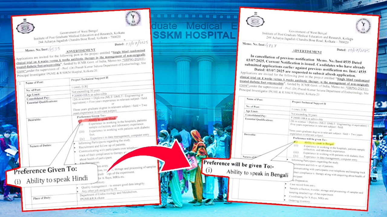 SSKM: পিজি হাসপাতালে চাকরির নোটিশ সংশোধন করে বাংলাকে অগ্রাধিকার