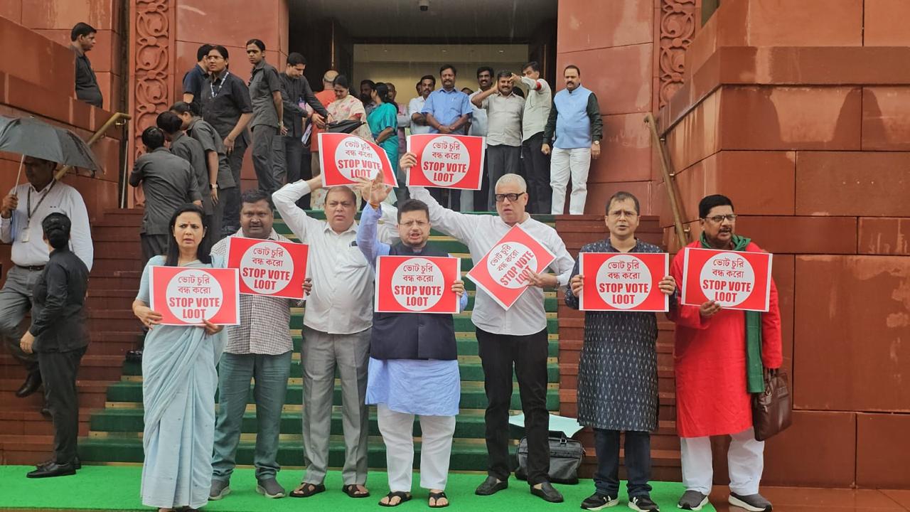 SIR: ‘ভোট চুরি’ বন্ধের দাবিতে সংসদ চত্বরে বিক্ষোভ তৃণমূলের