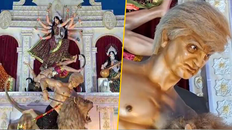 মহিষাসুর Trump! ভাইরাল এই পুজো