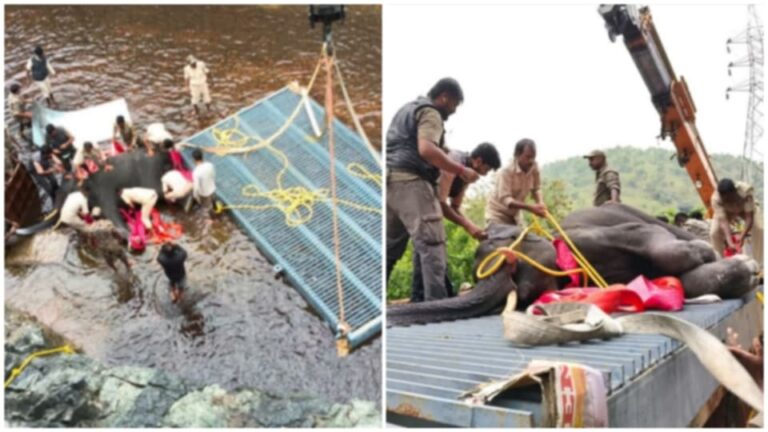 মালভল্লির খরস্রোতা খাল থেকে চার দিনের প্রাণপণ লড়াই শেষে উদ্ধার হস্তিশাবক