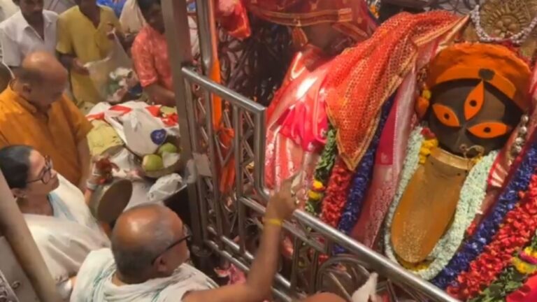 মহানবমীর সন্ধ্যায় কালীঘাট মন্দিরে মুখ্যমন্ত্রী, পুজো দিয়ে বাজালেন কাঁসর