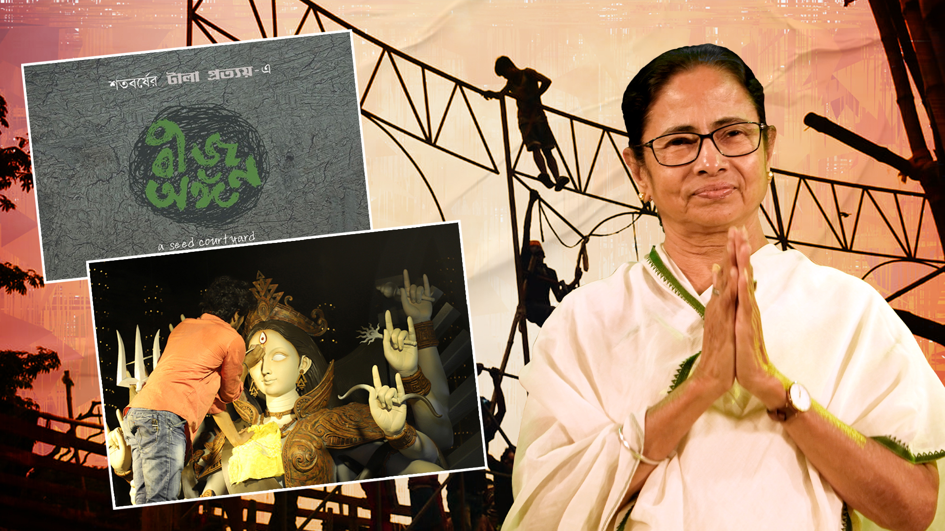 নিউজ ডেস্ক, দৃষ্টিভঙ্গি, ১০.০০: টালা প্রত্যয় এবার সেজে উঠেছে মুখ্যমন্ত্রী মমতা বন্দ্যোপাধ্যায়ের ভাবনায়। এখানে মা দুর্গা অসুরদলনী নন। তিনি চাষির ঘরের কন্যা। আমাদের মনে রাখতে হবে, সভ্যতার উৎস ভূমি। ছোট্ট বীজেই লুকিয়ে থাকে অরণ্যের প্রতিশ্রুতি। আর কেন্দ্রীয় সরকারের দিশাহীন কৃষি বিলে যখন জমির অস্তিত্ব বিপন্ন, কৃষক বঞ্চিত, তখন মা দুর্গা নিজেই লাঙল ধরেছেন। তাঁর পদতলে বধ হচ্ছে ‘ইউরিয়া’ লেখা সারের বস্তা। সেখান থেকে বেরিয়ে আসছে কৃষক স্বার্থ বিরোধী কৃষি বিল। শিল্পকর্মের বুননে কেন্দ্র বিরোধী, কৃষক স্বার্থ বিরোধী প্রতিবাদের মুখ হয়ে উঠেছে শতবর্ষে টালা প্রত্যয়ের ‘বীজ অঙ্গন’। যে নামের পিছনে লুকিয়ে মুখ্যমন্ত্রী মমতা বন্দ্যোপাধ্যায়ের ভাবনা। তাঁর দেওয়া এই নাম সার্থক ভাবেই মণ্ডপে ফুটিয়ে তুলেছেন শিল্পী ভবতোষ সুতার।