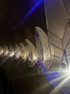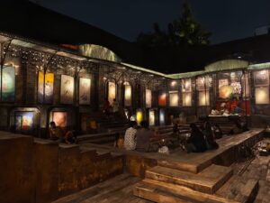 হাতিবাগান সর্বজনীন দুর্গোৎসবের এবারের থিম, ‘অথঃ ঘাট কথা’। ফরাসি শিল্পী তমাস অঁরিয়েতের সঙ্গে বাঙালি শিল্পীরা হাতে হাত মিলিয়ে তৈরি করেছে মণ্ডপ।