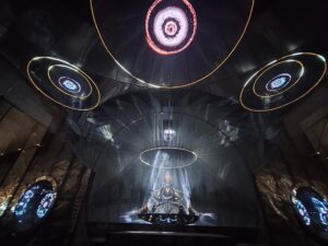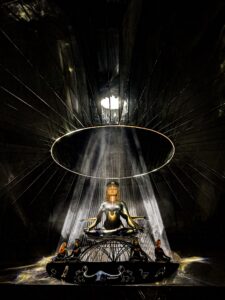 ২৫তম বর্ষে দমদম পার্ক ভারতচক্রের থিম ‘তন্মাত্র’ (দ্য অরা)। শিল্পী সুশান্ত শিবাণী পালের ভাবনায় সেজে উঠেছে মণ্ডপ।