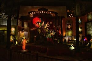 ত্রিধারা সম্মিলনীর থিম ‘চলো ফিরি’। মণ্ডপে ঢুকলেই পৌঁছে যাওয়া যাবে অঘোরীদের ডেরায়।