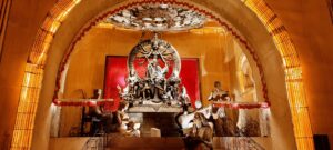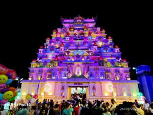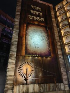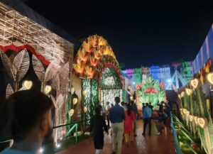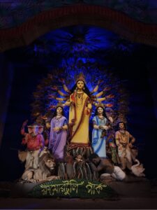 প্রতাপাদিত্য রোড ত্রিকোণ পার্কের থিম ‘দেবদর্শন’। ভাবনা ও রূপায়নে দীপ দাস ও ইশিকা চন্দ্র।