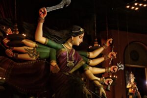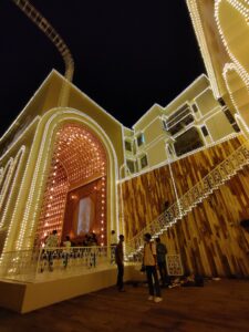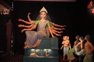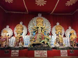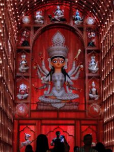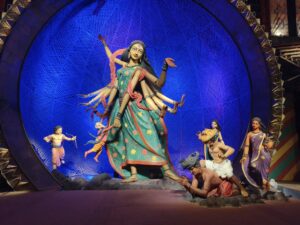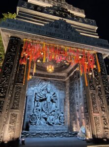 প্রতাপাদিত্য রোড ত্রিকোণ পার্কের থিম ‘দেবদর্শন’। ভাবনা ও রূপায়নে দীপ দাস ও ইশিকা চন্দ্র।