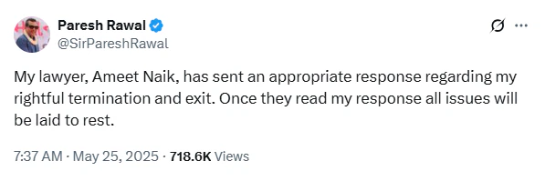 ঘটনার সূত্রপাত গত মে মাসে, যখন পরেশ রাওয়াল নিজের এক্স (X) হ্যান্ডেলে পোস্ট করে জানান যে তিনি আর হেরা ফেরি ৩-এর অংশ নন। এর মাত্র দু’দিনের মধ্যে অক্ষয় কুমারের প্রযোজনা সংস্থা Cape of Good Films রাওয়ালকে ২৫ কোটি টাকার ক্ষতিপূরণ দাবি করে আইনি নোটিস পাঠায়। অভিযোগ ছিল, তিনি কোনও চুক্তি ছাড়াই ১১ লক্ষ টাকা সাইনিং অ্যামাউন্ট নিয়েছিলেন এবং হঠাৎ করে সরে যাওয়ায় সিনেমার কাজ ব্যাহত হয়েছে।