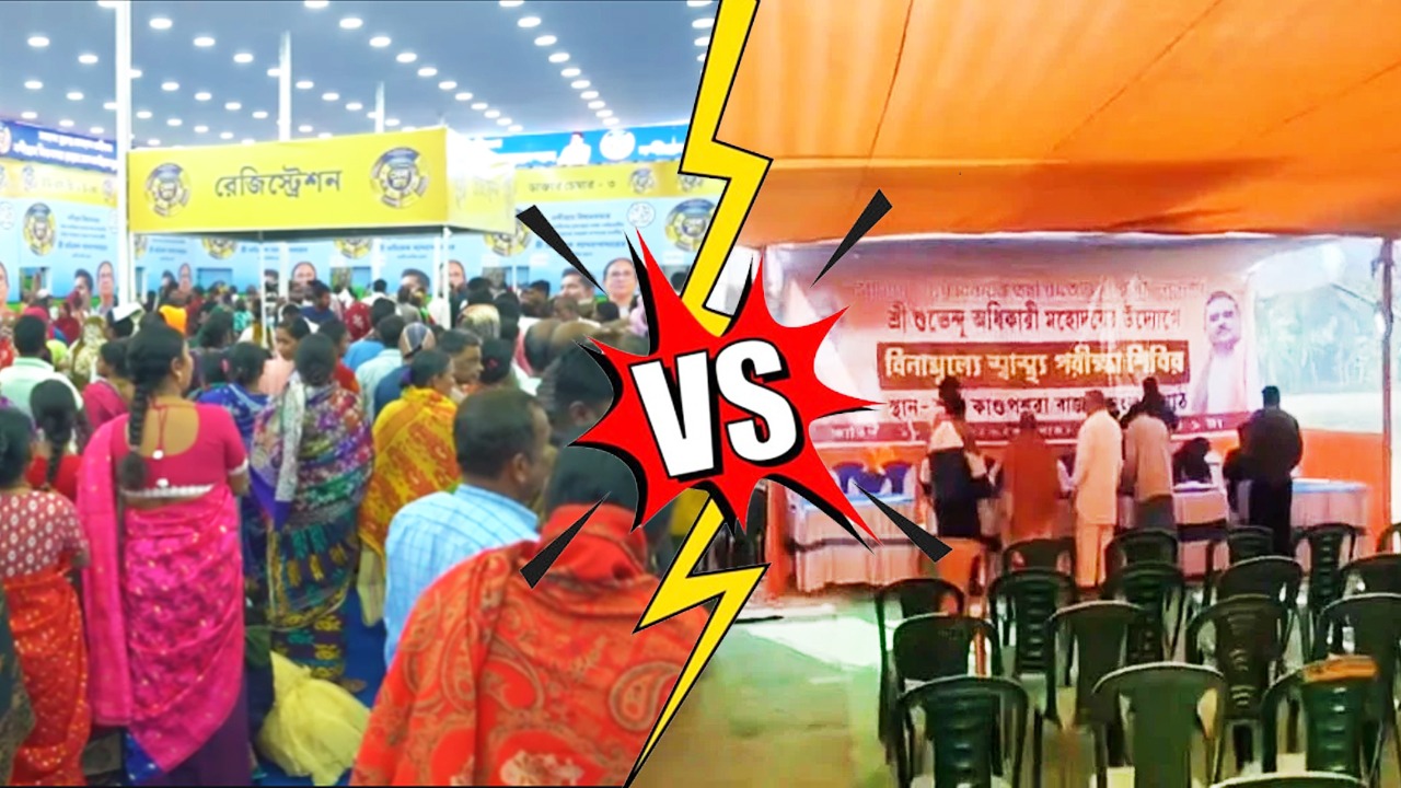 কিন্তু একেবারে উল্টো চেহারা বিরোধী দলনেতা শুভেন্দু অধিকারীর স্বাস্থ্য শিবিরে, কার্যত জনমানবহীন।