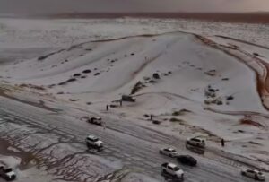 নিউজ ডেস্ক, দৃষ্টিভঙ্গি, ১৬:৫১: মরুভূমির দেশ হিসেবে পরিচিত সৌদি আরব। এবার সেখানেই ঘটল এক বিরল ও চমকপ্রদ ঘটনা। প্রায় তিন দশক পর দেশের বিভিন্ন অঞ্চলে দেখা মিলল তুষারপাতের। প্রচণ্ড গরম ও বিস্তীর্ণ বালিয়াড়ির জন্য পরিচিত সৌদি আরবের প্রাকৃতিক দৃশ্য যেন মুহূর্তে বদলে গেল—মরুভূমি ঢেকে গেল সাদা বরফের চাদরে, যা সাধারণত শীতপ্রধান দেশেই বেশি দেখা যায়।