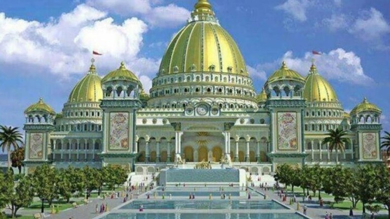 কিছুদিন ধরেই একটি রঙচঙে ছবি সোশ্যাল মিডিয়াতে ঘুরে বেড়াচ্ছে। বলা হচ্ছে এরকমই দেখতে হতে চলেছে বহু চর্চিত রাম মন্দির। পোস্টে এও দাবি করা হচ্ছে যে এখানে থাকবে ২,১০০ কেজির একটি ঘন্টা। এবং হিন্দু ভাই-বোনদের পোস্টটি শেয়ার করতে বলা হচ্ছে।