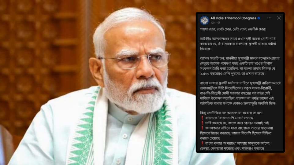 তৃণমূল নেতৃত্বের অভিযোগ, “বছরের পর বছর ধরে মোদী সরকার সেই দাবিকে উপেক্ষা করে এসেছে। আজ ভোটের স্বার্থে তারা কৃতিত্ব দাবি করছে।” শাসকদলের আরও অভিযোগ, বিজেপি শাসিত রাজ্যগুলিতে বাংলা ভাষায় কথা বলাকে অপরাধ হিসেবে দেখা হয়। সেখানে বাংলা বলা শ্রমিকদের ‘বাংলাদেশি’ তকমা দিয়ে হেনস্থা, মারধর, এমনকী পুশব্যাক করার ঘটনাও ঘটেছে। জনগণনার নথিতে বাংলা ভাষাকে মাতৃভাষা হিসেবে উল্লেখ করলেই তাদের বিদেশি হিসেবে চিহ্নিত করার চক্রান্ত চলে বলেও অভিযোগ করেছে তৃণমূল।