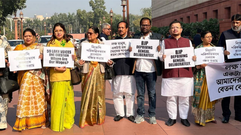১০:৫০- বুধবারের পরে আজ বৃহস্পতিবারও সংসদ চত্বরে বাংলার বকেয়ার দাবিতে বিক্ষোভ দেখালেন তৃণমূল সাংসদেরা