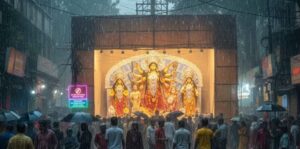 দুপুর গড়াতেই নামতে শুরু করে বৃষ্টি। সন্ধের দিকে কিছুটা বিরতি মিললেও রাত নামতেই ফের ঝরতে থাকে জলধারা। তবে সেই ভিজে আবহাওয়া আটকে রাখতে পারেনি মানুষের উচ্ছ্বাস। বর্ষণকে উপেক্ষা করেই রাস্তায় নামে দর্শনার্থীদের ঢল, প্যান্ডেলে প্যান্ডেলে জমে ওঠে ভিড়। ছাতা, রেনকোট হাতে নিয়েই শুরু হল প্যান্ডেল হপিং। নামী পুজো মণ্ডপগুলোতে দর্শনার্থীদের ঢল সামলাতে কষ্ট হয়েছে আয়োজক ও প্রশাসনের।