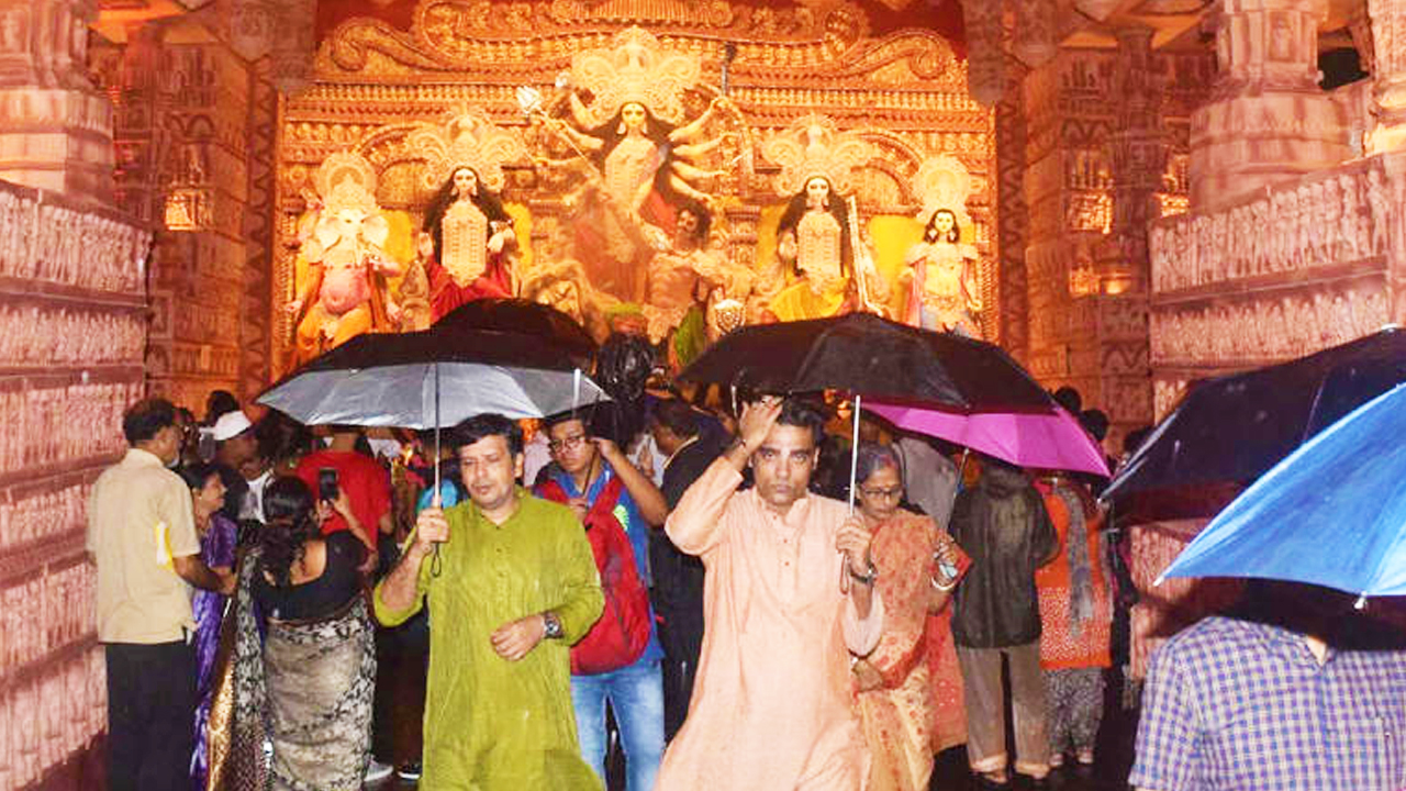 নিউজ ডেস্ক, দৃষ্টিভঙ্গি, ১৬:০০: অষ্টমীর সকালটা শুরু হয়েছিল প্রবল আর্দ্রতা আর ভ্যাপসা গরম দিয়ে। অঞ্জলি শেষ করে সন্ধিপুজো শুরু হওয়ার আগেই বিক্ষিপ্ত ভাবে কলকাতায় বৃষ্টি শুরু হয়ে গেল। সকালে রোদ ঝলমলে পরিবেশ নিমেষে উধাও। দুপুর গড়াতে না গড়াতেই চারদিক কালো করে ঝেঁপে বৃষ্টি নামল। সঙ্গে মেঘের গর্জন। বেশ কিছুক্ষণ শহরে অবিরাম ধারাপাতে জলও জমল কোথাও কোথাও। সকাল সকাল যারা রোদের আভাস দেখে প্যান্ডেল হপিংয়ে বেরিয়েছিলেন, তাঁরা বৃষ্টি থেকে মাথা বাঁচাতে হুড়মুড়িয়ে আশ্রয় নিলেন বিভিন্ন মণ্ডপে।