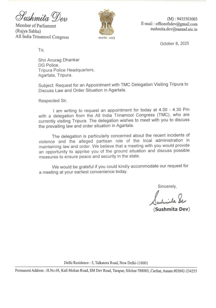 নিউজ ডেস্ক, দৃষ্টিভঙ্গি, ১৩.৫০: ত্রিপুরায় পৌঁছেই পুলিশি বাধার মুখে তৃণমূল কংগ্রেসের (TMC) প্রতিনিধি দল। বৃহস্পতিবার সকালে আগরতলা বিমানবন্দরে নামার পরই তাঁদের বাধা দেওয়া হয় বলে অভিযোগ। দলের তরফে জানানো হয়েছে, বিমানবন্দর চত্বরেই তাঁদের আটকে দেওয়া হয়, এমনকি অটো বা প্রিপেড ট্যাক্সি বুক করার সুযোগও দেওয়া হয়নি।